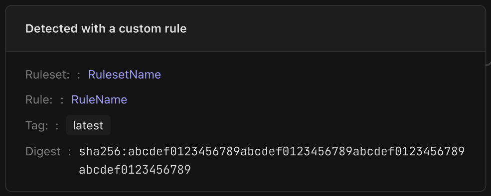 Once a Ruleset is deployed, it will be executed during the image scan. If any rule in the Ruleset matches, a finding will be generated. You can view the findings on the Findings page of the Binarly Transparency Platform. The findings that are generated from deployed Rulesets will have a “Detected with a custom rule” section that contains information about the matched rule.