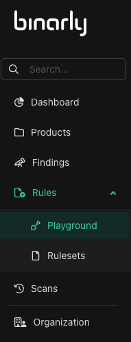 Each user has access to their own Rule Playground environment. To access it, navigate to “Rules -> Playground” in the navigation menu.