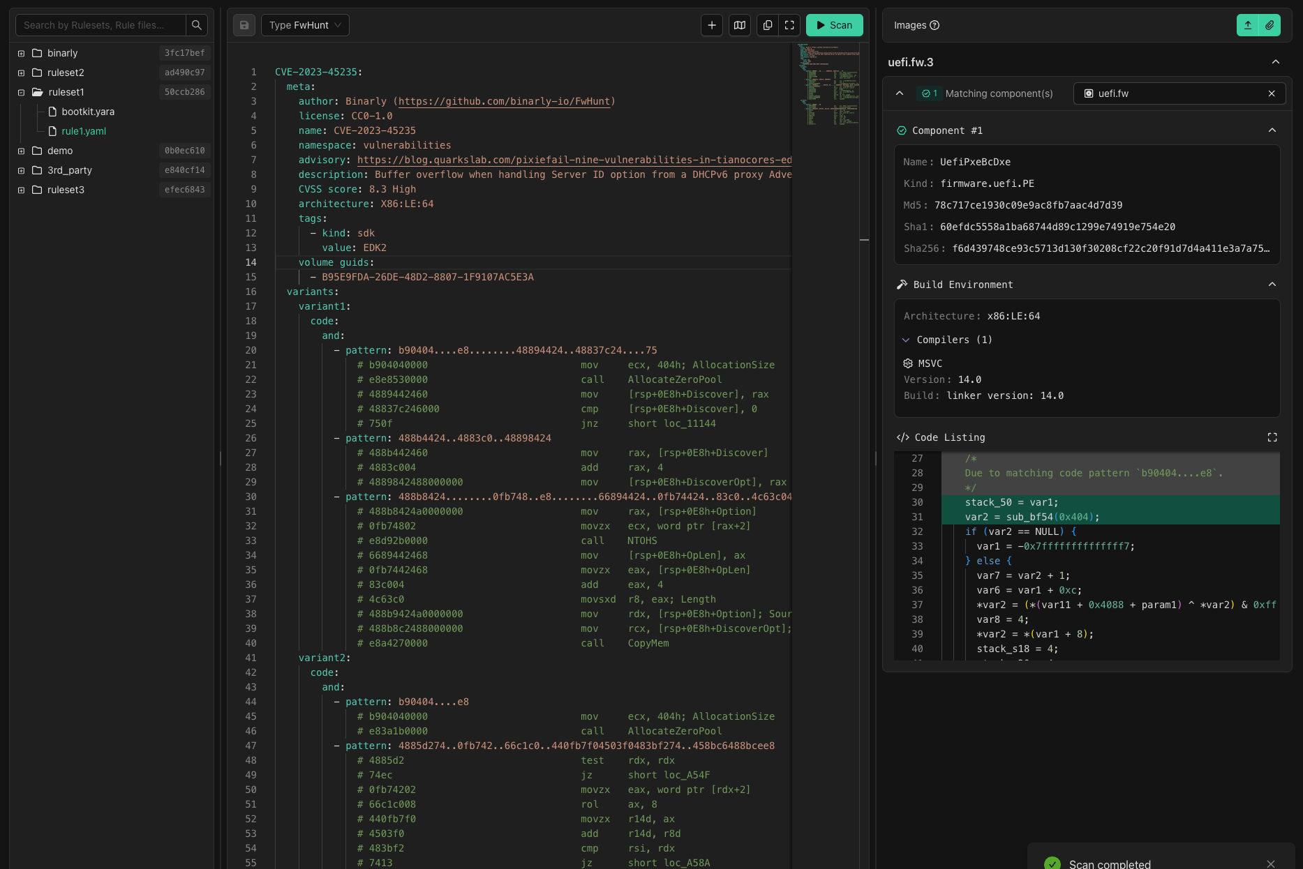- Code Editor: The central section where users can write and edit their rules. It supports syntax highlighting and linting for better code readability and error detection.